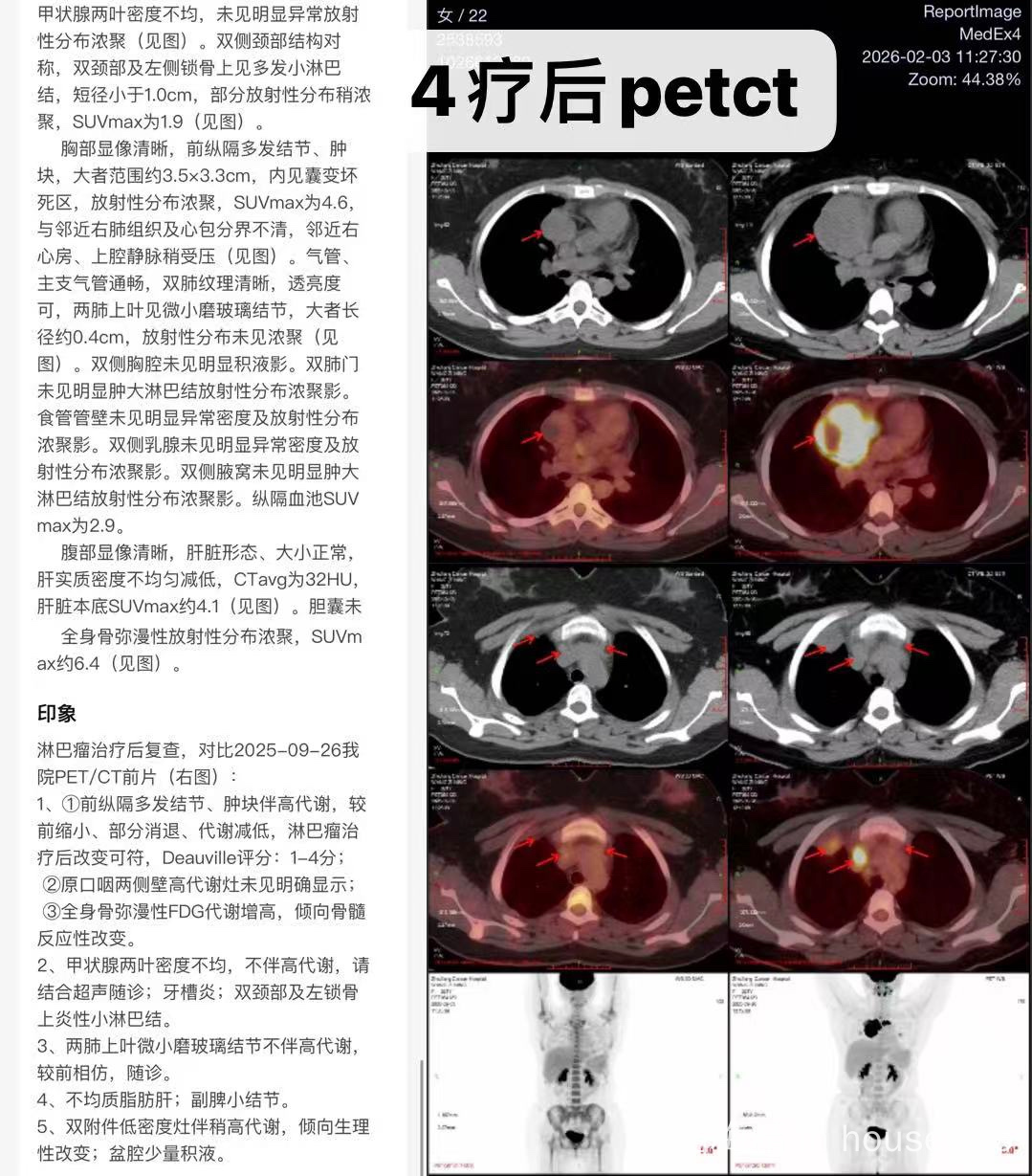 · 4疗后PET-CT:肿块 3.5×3.3cm,SUVmax 4.6,Deauville 4分