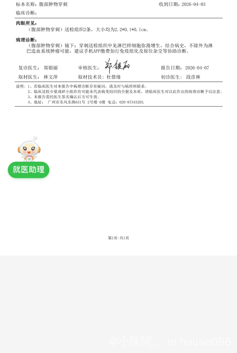 槐序 发表于 2026-04-10 13:25 一切要等免疫组化结果出来,才能确定类型