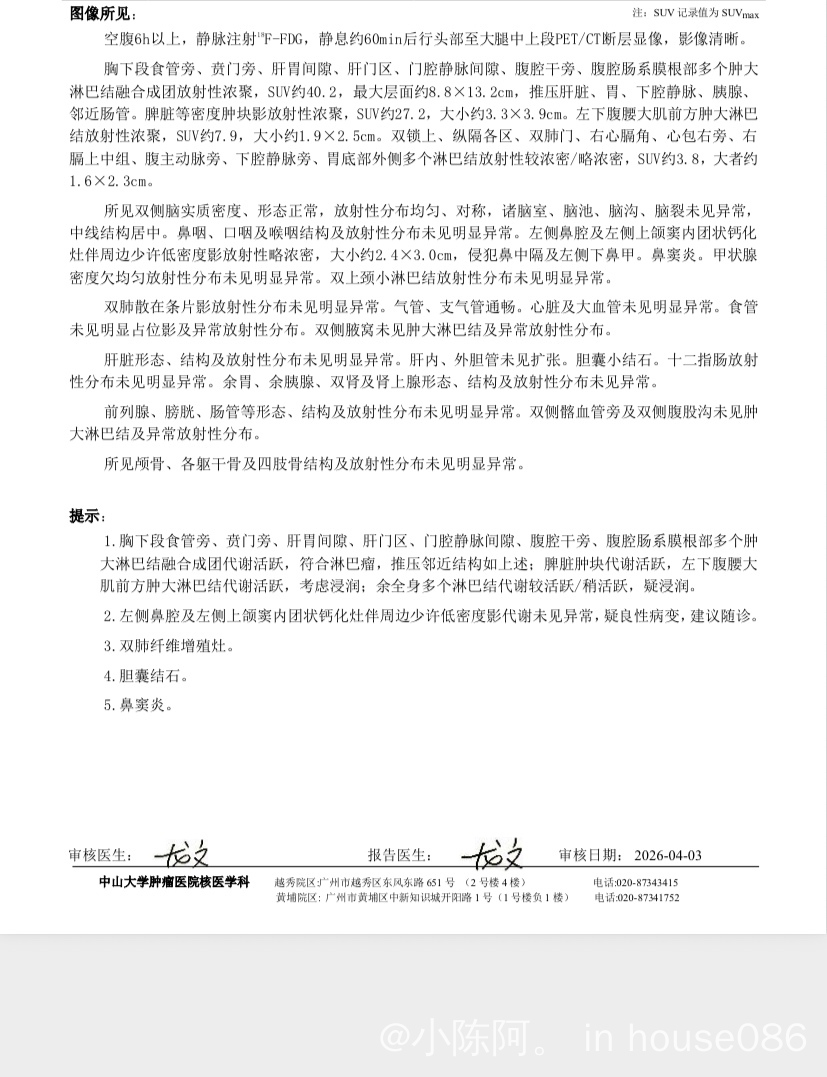南胖 发表于 2026-04-10 12:07 你这,赶紧找医生加快病理。可能需要在有初步病理的情况先打一次万金油方案了。