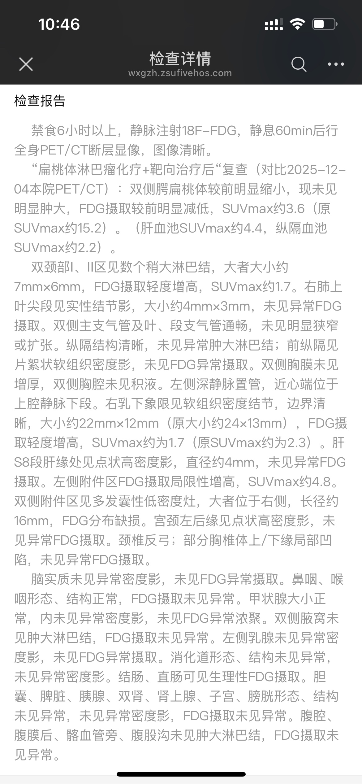 余-生 发表于 2026-04-11 10:10 跟我两年前结疗时一模一样 我是单侧 结疗摄取3.4 主治医生提都没有提放疗的事情