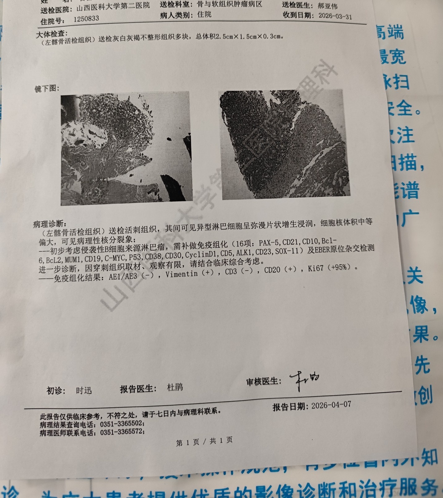颖子-淋巴瘤之家 发表于 2026-04-11 22:30 先等免疫组化出来看给出的结论,有条件的话最好做一次病理会诊