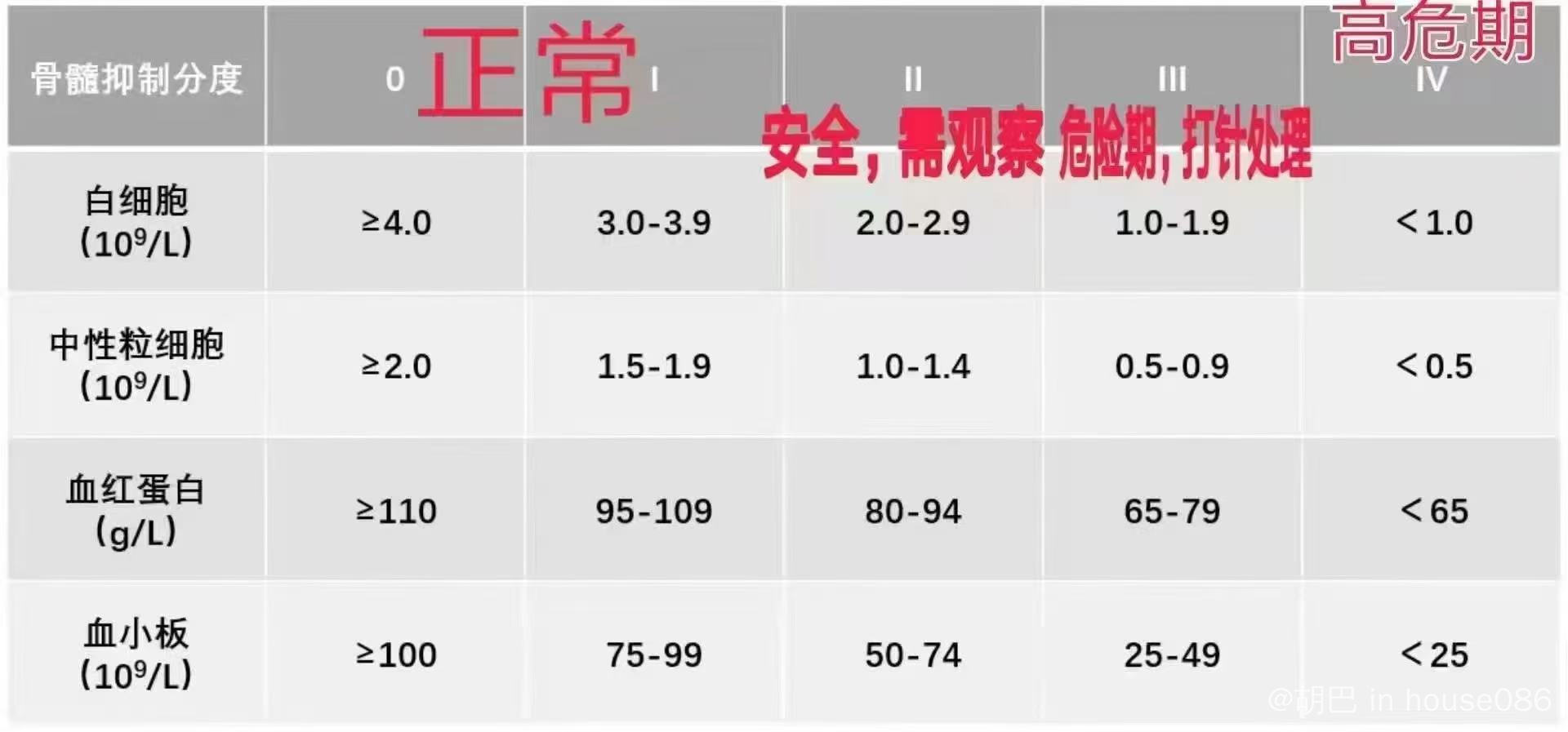 我们可以通过这张表判断骨髓抑制分度,精准判断风险等级