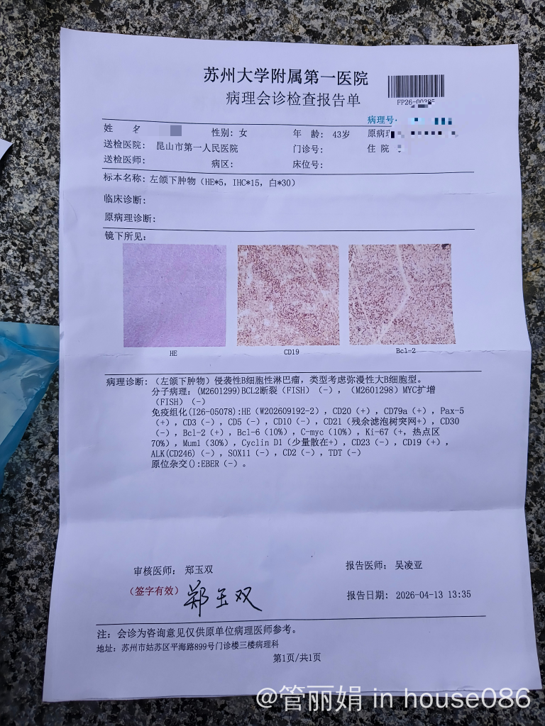 病理报告弥漫大b细胞(非生发中心起源)
