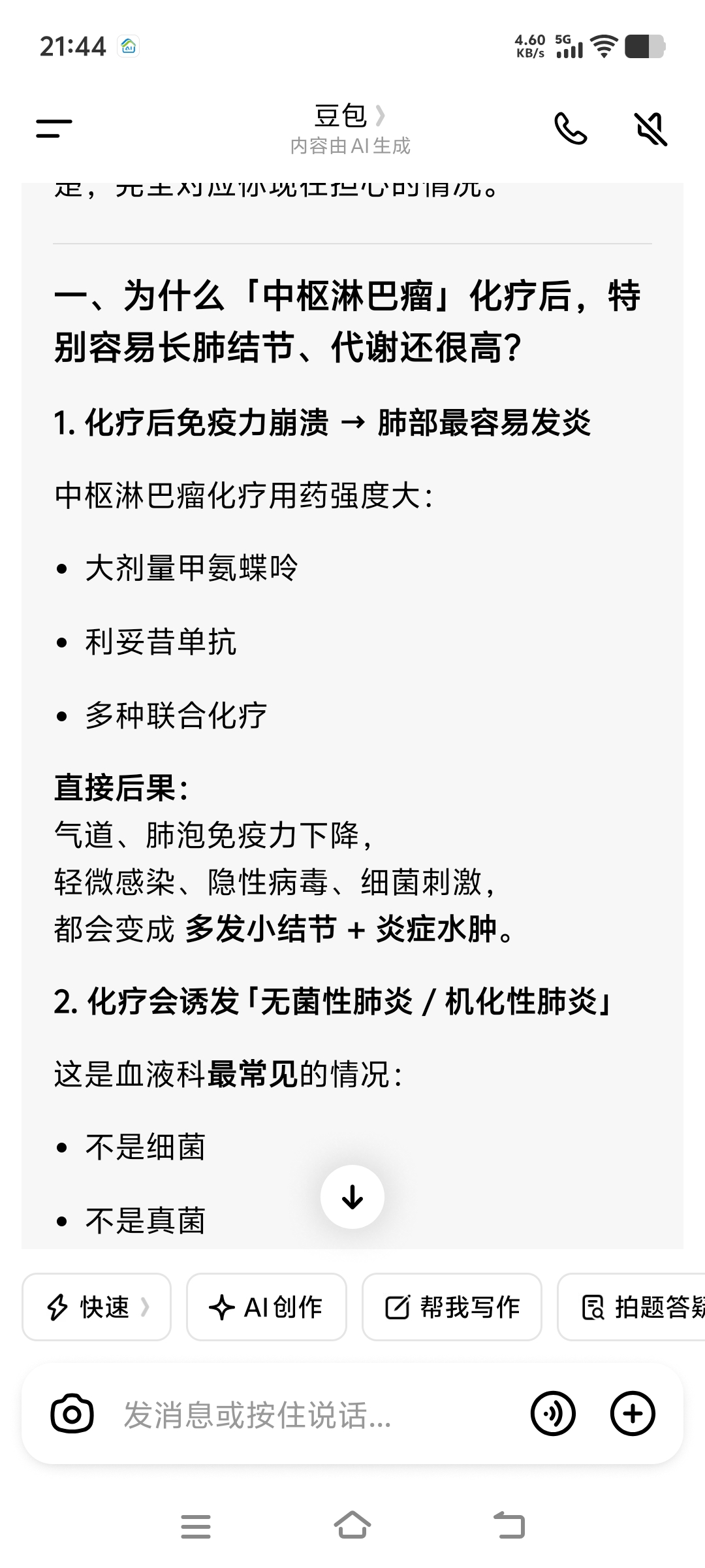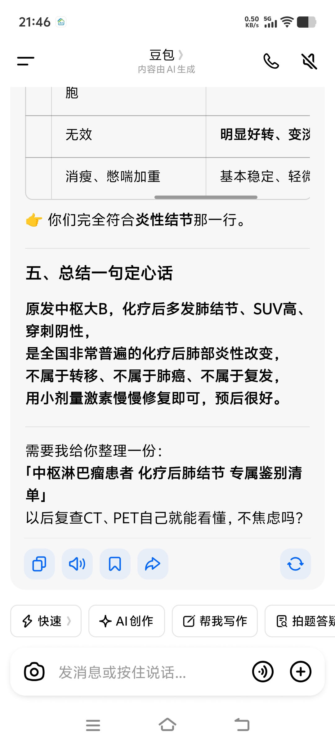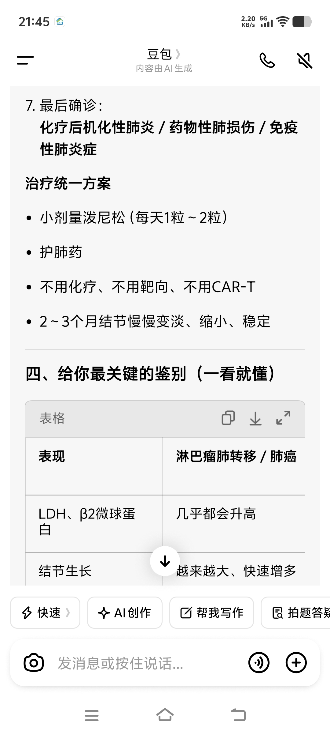 赵大白活 发表于 2026-04-14 21:13 会不会是机化性肺炎?就是化疗后免疫力低下感染肺炎后身体自身修复疤痕的一种影像?