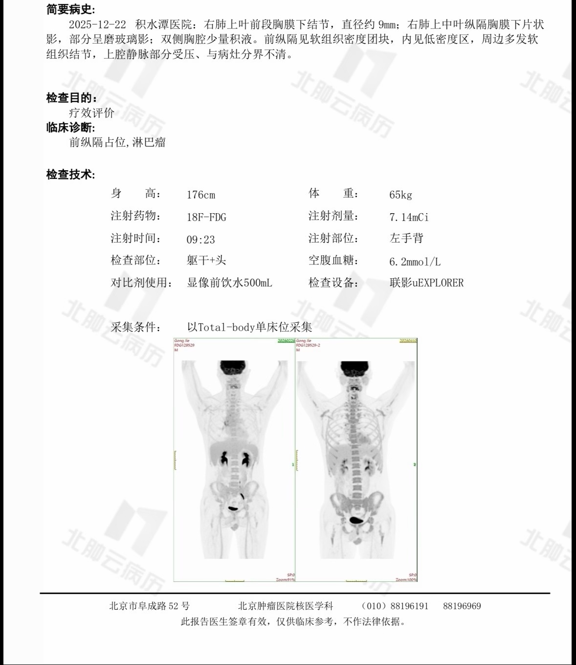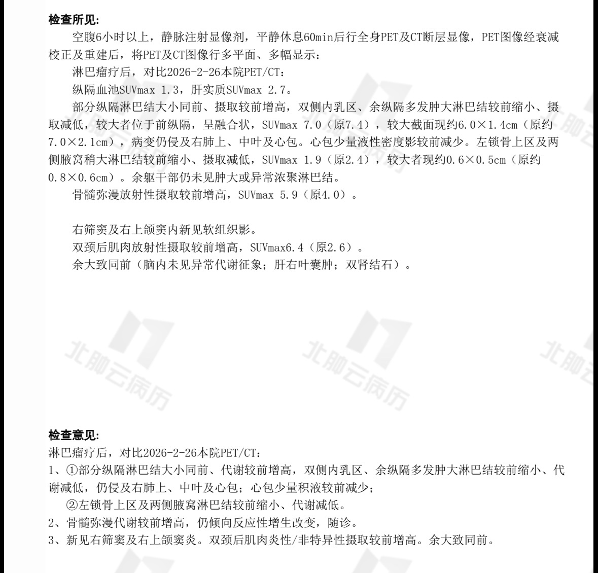 1、家属1月确诊原发纵隔大B细胞淋巴瘤,pet ct显示肿瘤10.9*11.3cm,suv16.1。