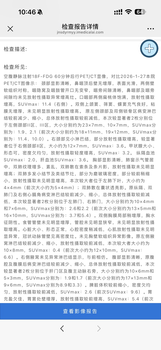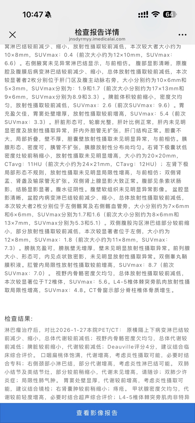 小王老王向前冲 发表于 2026-04-16 12:08 医生没说换方案,还是按照原方案BV+AVD治疗,deauville 4分,但是整体的摄取值都比之前有了大幅降低,效果整体来看应该还是可以的吧